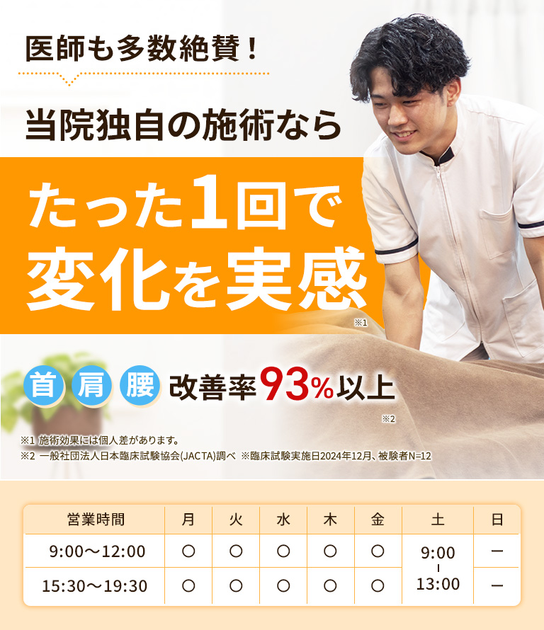 塚本駅前整骨院では1回の施術で症状が楽になります。